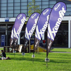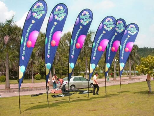 Использование мобильного флагштока может стать отличным способом заявить о себе! Мы предлагаем изготовление виндер флагов «Капля», на которые можно нанести свой логотип или эмблему. Такой оригинальный вид наружной рекламы, в отличие от баннеров и плакатов, отличается большей долговечностью и мобильностью.